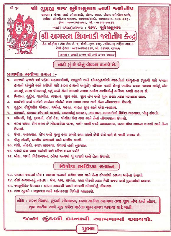 - Wiss and Rev.Maharishis Sadhus and Siddhas lived long ago have written on palm leaves, clearly to explain the future prediction of a person from his birth to death through their thumb impression (Gents right and Ladies left) for all the 12 houses shortly.